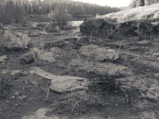 I borrowed my brothers digital camera and made some photographs to be able to put up here on the blog sooner than if I had just used film (it seems it takes forever for me to get film developed). I hiked down to Sheep Falls, and found a fire ring: