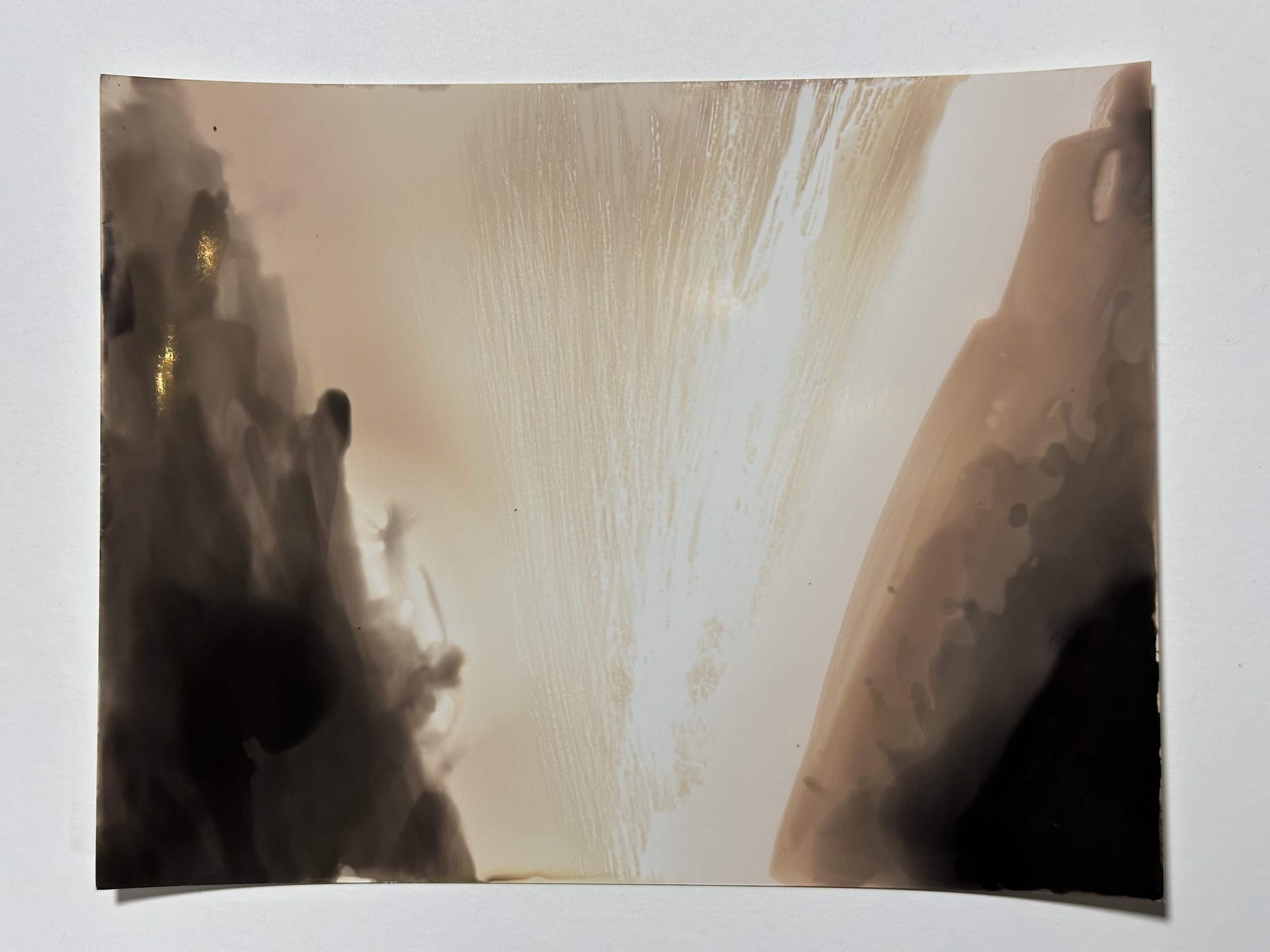 When I say I’ll be using photo paper and chemicals, I’m referrring to chemigrams, a process of brushing, dripping, or spraying developer and fixer and other household chemicals on photo paper which all interact with the light-sensitive emulsion in their own unique ways.