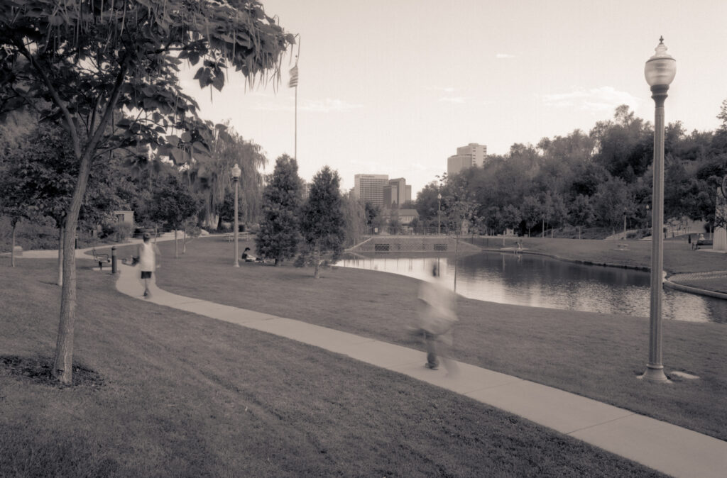 The parks photographed are all “mature” parks. They all have existed for some time, and therefore represent more closely what the landscape architect had envisioned when the park was first planned. They represent what I feel about the landscape in the urban environment.